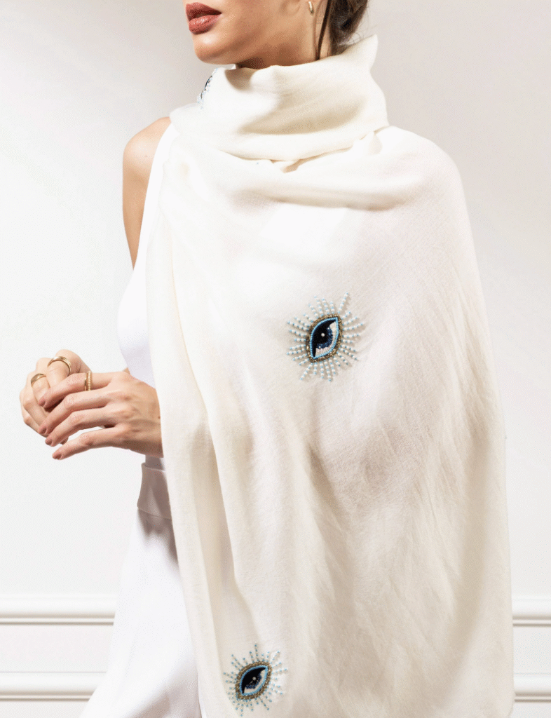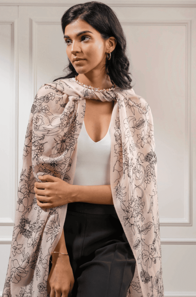 Discover the charm of embroidered scarves at #WoolgoldScarfs
