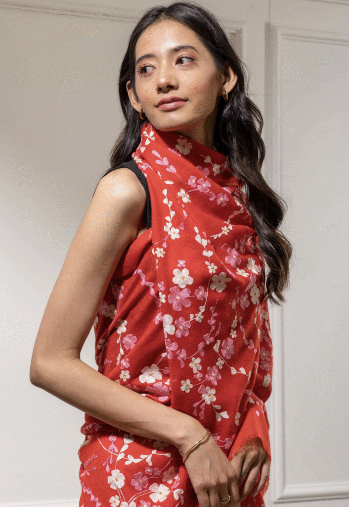 Discover the charm of embroidered scarves at #WoolgoldScarfs
